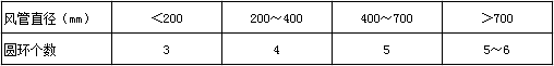 圓形風(fēng)管等面積劃分個(gè)數(shù)或圓環(huán)個(gè)數(shù)按下表確定: