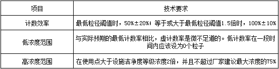 ISO 14644-3“測試與測試方法”標(biāo)準(zhǔn)中,對光散射離散粒子計數(shù)器提出的測量技術(shù)要求及附加技術(shù)要求,如下表: