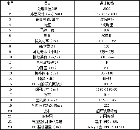 FFU群控系統(tǒng)配套FFU的相關(guān)參數(shù) :