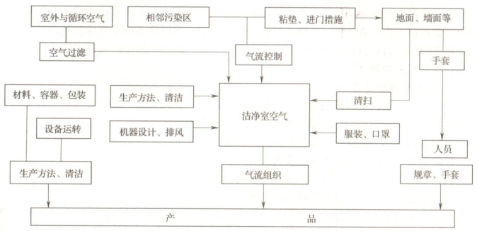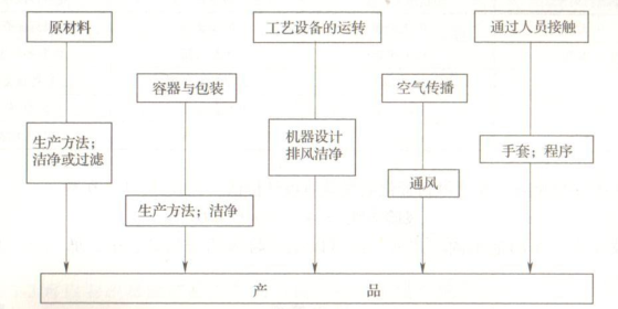 下圖給出了工藝過(guò)程及設(shè)備污染源、傳播途徑及其控制方法的示意圖: