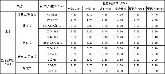 式中:A——100%負荷時的性能系數(shù)(W/W),冷卻水進水溫度30℃/冷凝器進氣干球溫度35℃;