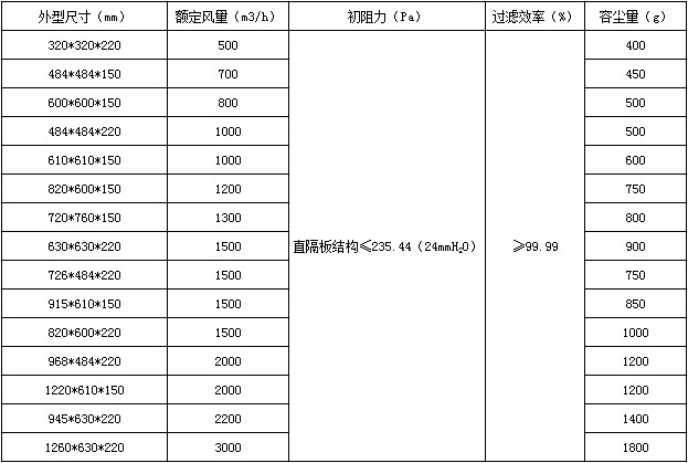 有隔板高效過(guò)濾器技術(shù)參數(shù)如下:
